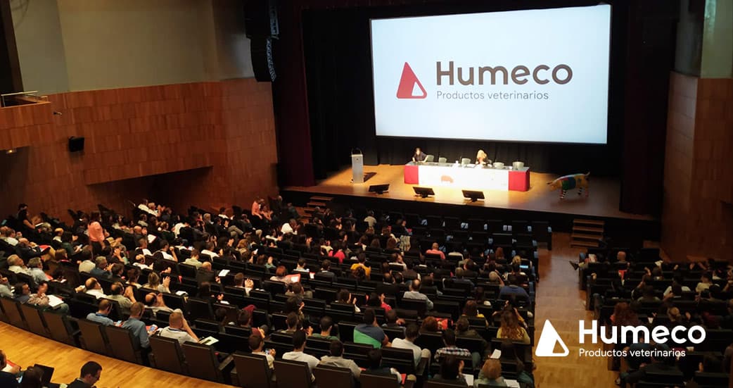 La Directora Técnica de HUMECO, Dra. Arantxa Echegaray realizó la presentación de la jornada junto al presidente del Colegio de Veterinarios de Huesca, D. Fernando Carrera.