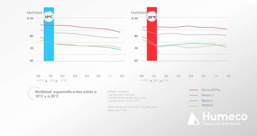 También es necesario verificar la temperatura del semen y la del medio de conservación. No mezclarlos si la diferencia de temperatura entre los dos es superior a 2ºC.
