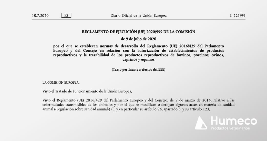 Y por último respecto a los requisitos y especificaciones de carácter técnico para el marcado de productos reproductivos para su trazabilidad, el Reglamento dice que: