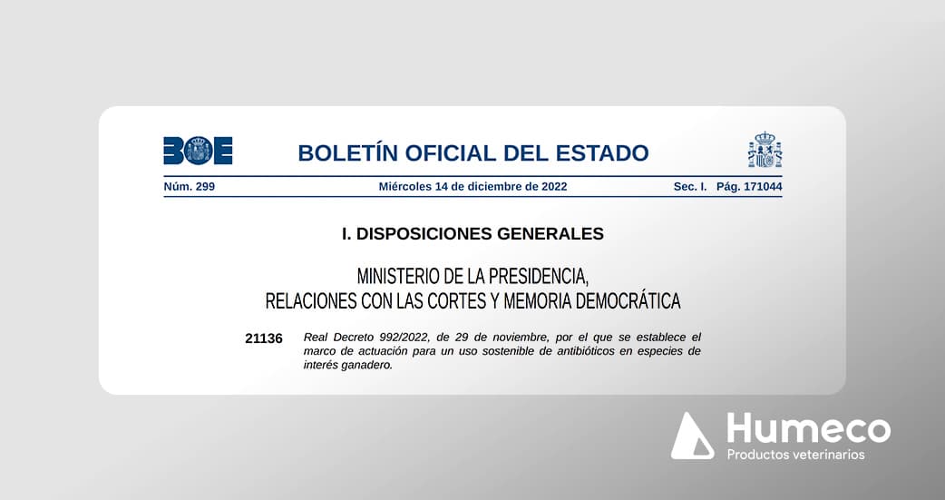 El pasado enero entró en vigor el Real Decreto 992/2022, por el que se establece el marco de actuación para un uso sostenible de antibióticos en especies de interés ganadero.