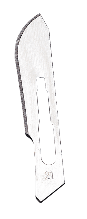 - Las hojas de bisturí número 21 presentan una forma curva, lo cual permite realizar incisiones un poco más profundas.