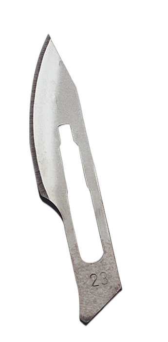 - Las hojas de bisturí número 23 son similares a las 20, 21 y 22 con la salvedad de que poseen un borde cortante redondeado y más puntiagudo.