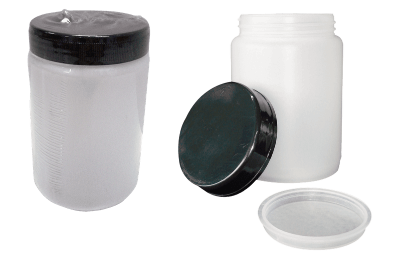- Boca ancha y cuerpo cilíndrico, con tapón obturador interior y tapa a rosca