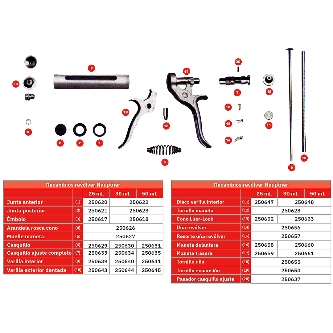 - Válido para Revólver Hauptner de capacidad 25, 30 y 50 mililitros