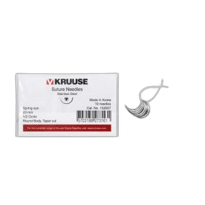 El Redondo Aguja Cuerpo, Circular ½, Ojo de Muelle son agujas de sutura diseñadas por precisión elaboradas por acero inoxidable, diseñados específicamente para una cirugía de tejidos blandos. Con un cuerpo cilíndrico redondeado para garantizar una fácil penetración de los tejidos blandos y un cuerpo aplanado para una empuñadura de aguja perfecta, estas agujas de 23 milímetros ofrecen precisión quirúrgica ideal. Cada paquete contiene 10 unidades.