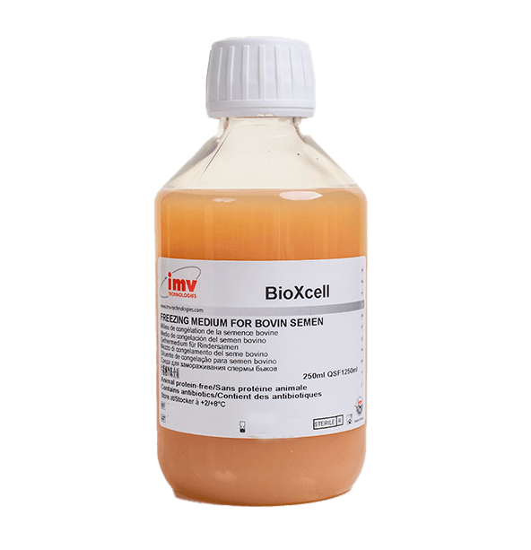 Bioxcell 250 ml C.S.P. 1.250 ml es un diluyente seminal libre de proteínas animales y especialmente diseñada para semen bovino. Actúa como un conservante tanto para el semen congelado (-196 ° C) y fresco (+4 ° C) mientras mantiene altas tasas de fertilidad incluso a bajas concentraciones. Este producto incorpora una mezcla de antibióticos que incluyen lincomicina, espectinomicina, gentamicina y tilosina, asegurando la salud y la viabilidad del semen. Una sola botella de 250 ml de celda Bio X produce 1250 ml de diluyente, que se puede congelar a -20 ° C después de la preparación. La ausencia de yema de huevo y/o leche en la formulación permite una fácil evaluación del semen diluido bajo un sistema de microscopio o CASA.