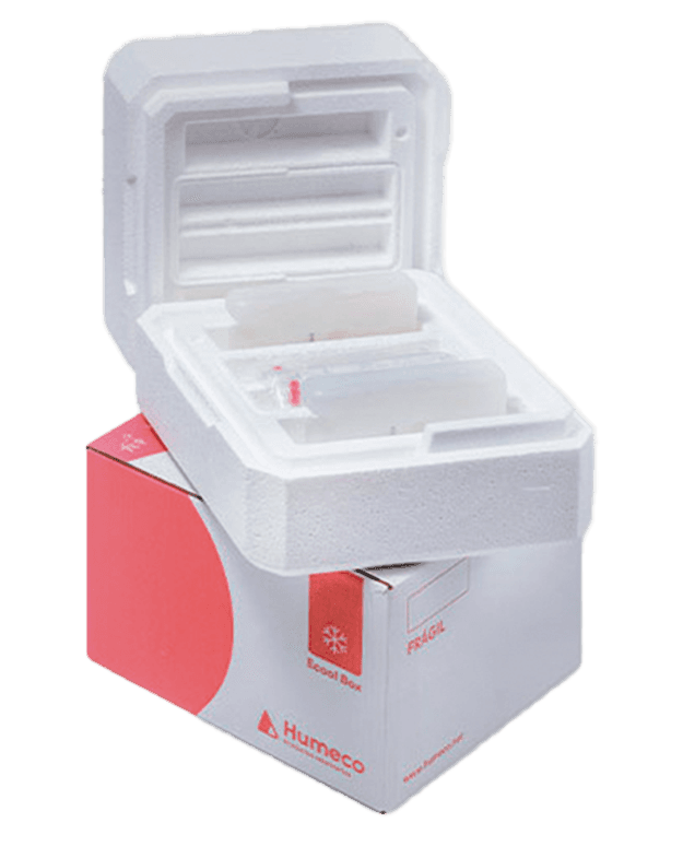 La caja de transporte Ecoolbox Equine Semen es una solución ligera y ecológica para la aplicación y el transporte de semen equino. Esta caja está elaborada con cartón 100% reciclado e incluye dos acumuladores de frío y dos jeringas con gorras. La caja presenta placas eutécticas reutilizables y reciclables, y garantiza un mantenimiento de temperatura óptimo entre +4 ° C y 15 ° C durante el tránsito. Diseñada para mantener su contenido viable por hasta 48 horas, la caja se enfría a un ritmo lento y constante de 0.13ºC por minuto. Las opciones de personalización están disponibles para que las cajas satisfacen necesidades específicas.