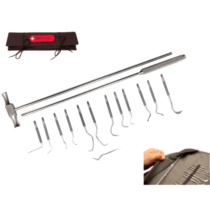 El set de examinación es un juego de herramientas integral para la odontología equina, que incorpora accesorios esenciales para equipos veterinarios profesionales. Hecho a mano con precisión, contiene herramientas de vanguardia diseñadas para facilitar evaluaciones orales, tratamientos y cirugías orales exitosas, reforzando su salud y bienestar oral en general.