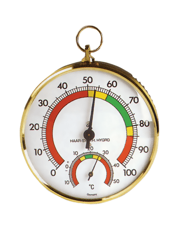 - Termómetro analógico sencillo con higrómetro para medir la condición del ambiente, la temperatura y la humedad relativa