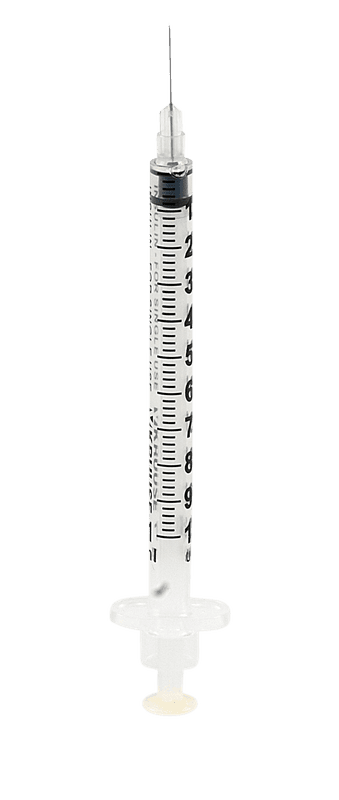 - Jeringuilla de tuberculina con aguja hipodérmica, sin látex, de un solo uso
