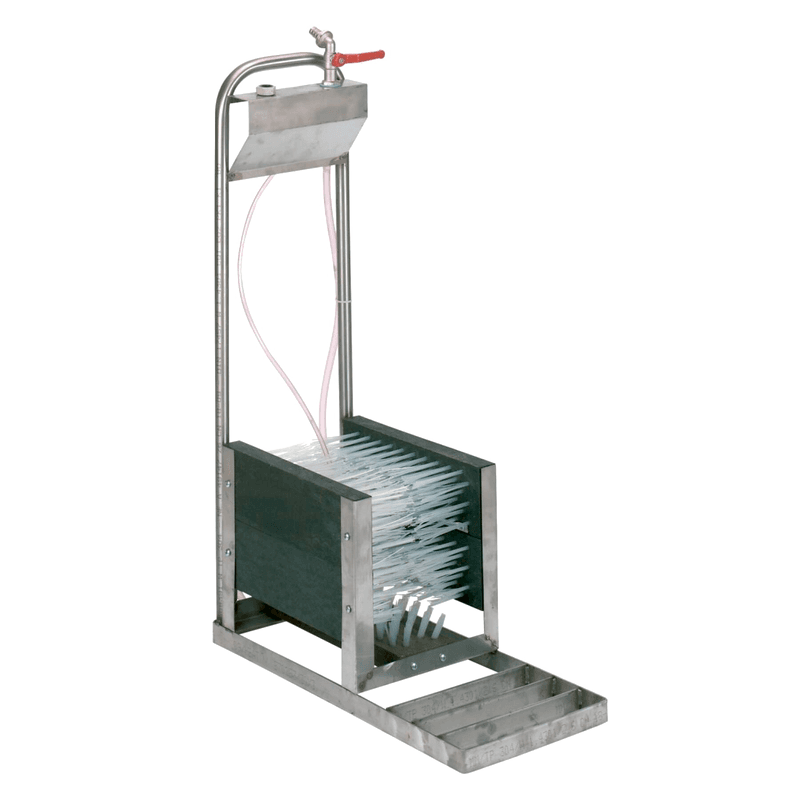 El Limpiabotas, un limpiador de botas de acero inoxidable robusto, es una herramienta integral para la protección general en la industria de la salud animal. Equipado con cinco cepillos y rejillas de nylon resistentes, efectivamente frota y limpia las plantas de arranque para evitar la contaminación cruzada. Se conecta directamente a una fuente de agua, asegurando un proceso de limpieza completo. El dispositivo también cuenta con un depósito incorporado para el desinfectante, proporcionando una capa adicional de higiene y seguridad.