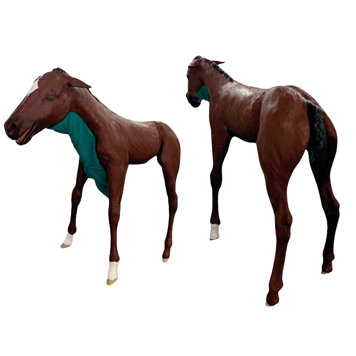 El Modelo de Potro Distócito es un simulador animal altamente avanzado diseñado específicamente para la capacitación y la educación veterinaria. Cuenta con un esqueleto de acero totalmente articulado que incluye una caja torácica, vértebras, pelvis y columna vertebral. El simulador está equipado con capacidades de movimiento realistas y está cubierto con piel y cola duradera y flexible. El cráneo consiste en una mandíbula, dientes y un paladar blando, que proporciona recursos educativos integrales para los profesionales de veterinarios.
