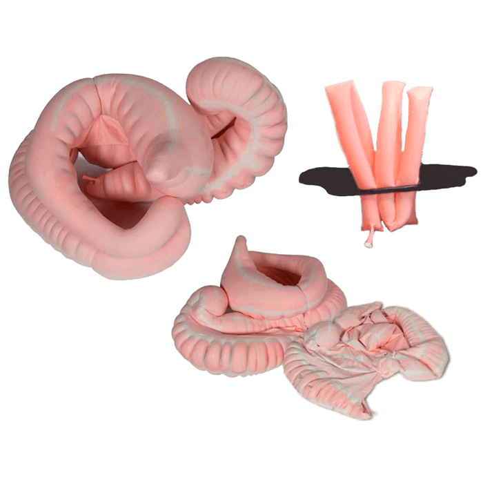 El Tracto GI Equino, un modelo anatómico hiperrealista, está meticulosamente diseñado para replicar el sistema gastrointestinal equino. Este modelo presenta un tracto gastrográfico de látex inflable dividido en cinco secciones distintas, incluidas el colon ventral derecho e izquierdo, el colon dorsal izquierdo y el cecum. También incluye una sección de 3 metros de largo del intestino delgado que también es inflable. Este simulador proporciona una experiencia táctil y visual que refleja mucho la anatomía equina real.