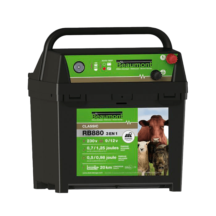 El pastor Batería RB 880 30 km es una herramienta de pastor eléctrico excepcional que funciona con una batería con una relación óptima de intensidad eléctrica / consumo. Esta unidad es fácil de operar, transportable y proporciona un alto nivel de autonomía debido a su bajo consumo de energía. El Energizer se usa idealmente para diversiones, áreas de calefacción de sementales y separación grupal de caballos. Está perfectamente diseñado para cercas largas y alimentado por una batería recargable, una batería de 9V y alimentación de la red. El dispositivo viene con un indicador de nivel de batería con hasta 3 niveles de visualización para un monitoreo preciso.