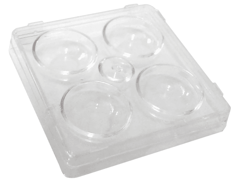 La PLACAS ESTÉRILES 4 POCILLOS es una placa de cultivo celular estéril meticulosamente diseñada, específicamente destinada para el lavado y análisis de embriones. Cada placa cuenta con cuatro pocillos, todos los cuales poseen superficies de crecimiento y volúmenes uniformes. Único en este diseño son los lados cónicos e inclinados de los pocillos, un enfoque innovador que garantiza que los embriones se asienten efectivamente en el fondo del pocillo, optimizando el proceso de examen de embriones.