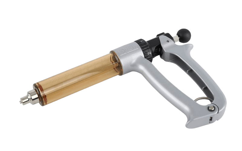 - Jeringa revolver dosificadora robusta y ligera con mango de aluminio