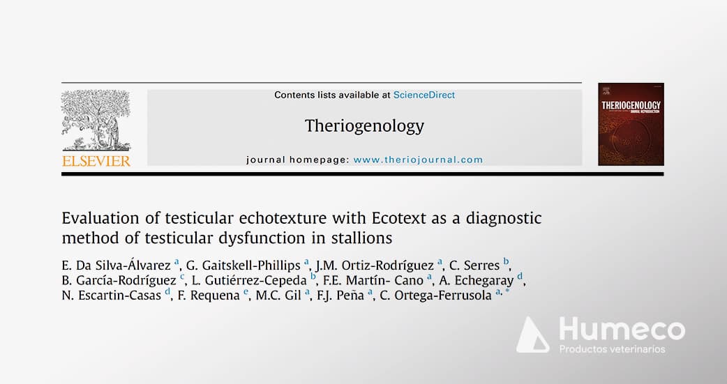 Un nuevo artículo de investigación publicado por Theriogenology sobre Ecotext realiza una evaluación de la ecotextura testicular con ecotext cómo método de disfunción testicular en sementales, para poder obtener respuestas a si nuestro producto es un buen método para el diagnóstico a este problema.