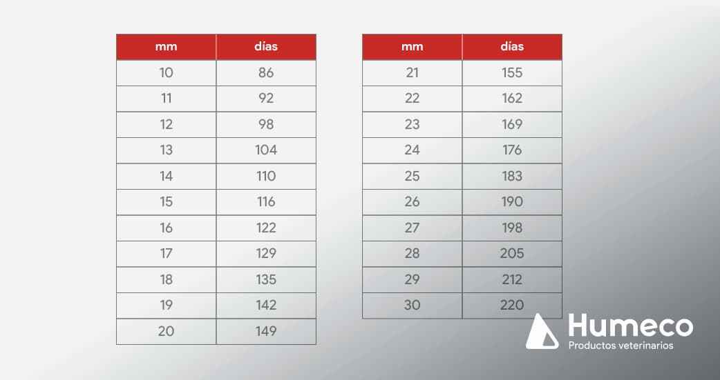Tabla de edad gestacional equina con medición ultrasonográfica del ojo fetal